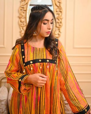 Embrace vibrant style with this eye-catching and comfortable two-piece suit (Long Frock/Kameez and Duppata). This ensemble is perfect for day gatherings, casual outings, or brightening up your daily wear.